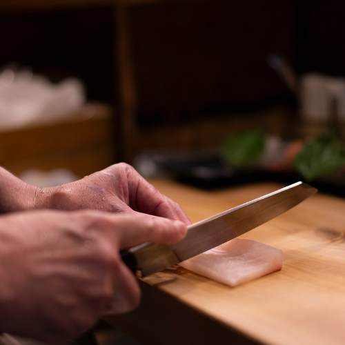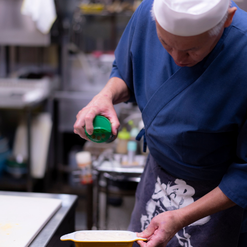 すべての素材は、料理人の手で一つひとつ丁寧に磨かれていきます。無駄を出さず、自然のうま味を最大限に生かす。なかやの厨房では、“素材と対話する料理”を大切にしています。
